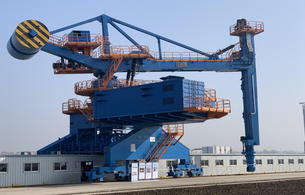 由杭州華新機(jī)電工程有限公司總包的一臺(tái)設(shè)計(jì)生產(chǎn)率為750t/h的螺旋卸船機(jī)總裝完成進(jìn)入調(diào)試階段。該設(shè)備用于國(guó)家能源集團(tuán)宿遷發(fā)電有限公司二期擴(kuò)建2×660MW超超臨界二次再熱機(jī)組工程。本工程位于宿遷市南偏東距市中心18km處的京杭大運(yùn)河南,二期新建碼頭共有4個(gè)泊位,配置兩臺(tái)螺旋式卸船機(jī)、兩臺(tái)16t清艙用港口門座機(jī)。