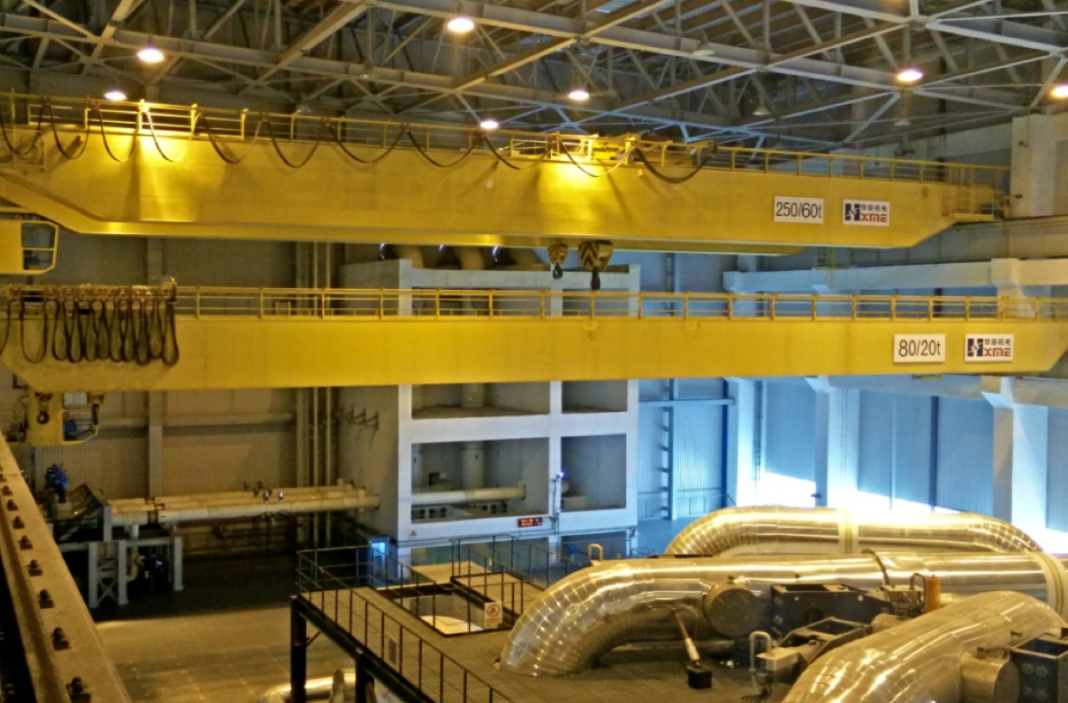 公司設(shè)計(jì)制造的所有橋機(jī)及門機(jī)的起升小車系消化吸收國(guó)外先進(jìn)技術(shù),結(jié)合我國(guó)當(dāng)時(shí)的配套水平,綜合研究院多年的技術(shù)研制經(jīng)驗(yàn),遵照GB/T3811-2008《起重機(jī)設(shè)計(jì)規(guī)范》、GB/T14405-2011《通用橋式起重機(jī)》等標(biāo)準(zhǔn),同時(shí)參照國(guó)外有關(guān)起重機(jī)標(biāo)準(zhǔn)及歐洲搬運(yùn)協(xié)會(huì)主流橋式起重機(jī)機(jī)型研制而成,節(jié)能減排,經(jīng)濟(jì)環(huán)保,特別適合地下廠房、新型工廠及大噸位貴重物件的吊裝、搬運(yùn)就位工作。公司首臺(tái)臺(tái)橋機(jī)為1990年研發(fā)、1992年投入生產(chǎn)的寧波北侖電廠80/20t橋式起重機(jī),公司首臺(tái)臺(tái)門機(jī)為1994年向富春江發(fā)電廠提供的2×20t尾水門機(jī)。近三十年的發(fā)展,已向國(guó)內(nèi)外眾多優(yōu)質(zhì)客戶提供千余臺(tái)橋機(jī)和門機(jī)設(shè)備,是目前業(yè)內(nèi)最先進(jìn)、最成熟的低凈空小車結(jié)構(gòu)。目前制造過的單小車橋機(jī)最大額定起重量為800t,雙小車橋機(jī)最大額定起重量為500t+500t,具備1500噸橋機(jī)的設(shè)計(jì)制造能力;制造過的門式起重機(jī)最大額定起重量為900t的造船龍門吊。